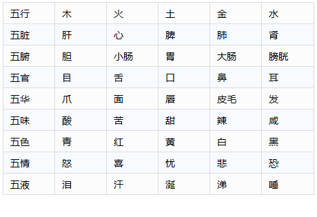 中醫(yī)陰陽(yáng)與五行學(xué)說(shuō) 2017-04-26 健康小螞蟻 【健康食療】讀而思 【陰陽(yáng)學(xué)說(shuō)】 定義陰陽(yáng)是中國(guó)古代哲學(xué)的范疇,是對(duì)自然界相互關(guān)聯(lián)的某些事物、現(xiàn)象及其屬性對(duì)立雙方的概括。陰陽(yáng)屬性歸類表人體組織結(jié)構(gòu)陰陽(yáng)屬性劃分表【五行學(xué)說(shuō)】 定義五行學(xué)說(shuō)是中醫(yī)學(xué)的又一哲學(xué)依據(jù)。研究五行的內(nèi)涵、特性、及生克制化規(guī)律,并以五行特性為依據(jù)歸納自然界各種事物及人體組織器官和現(xiàn)象,以生克制化規(guī)律闡釋宇宙萬(wàn)物之間相互關(guān)系。五行五行是相鄰相生,相隔相克相生:木生火,火生土,土生金,金生水,水生木。----生為發(fā)展相克:木克土,土克水,水克火,火克金,金克木。----克為平衡中醫(yī)學(xué)里講究“五行、五氣、五臟、五味、五色”,他們彼此勾連,相互提攜,相生相克。五行和諧與否直關(guān)身體運(yùn)營(yíng),哪一項(xiàng)強(qiáng)了弱了都會(huì)出現(xiàn)相應(yīng)的身體癥狀,所以,了解機(jī)體五行也是健康的必要。木屬木的時(shí)令:春季屬木的器官:肝、膽、眼睛。工作過(guò)于辛苦時(shí)第一要維護(hù)的就是肝臟。因?yàn)楦问巧眢w里集中藏血的器官,你玩命工作它就得玩命儲(chǔ)血。五行本來(lái)是按肝→心→脾→肺→腎這個(gè)方向相生的,肝過(guò)勞虛弱,心、脾、肺、腎都進(jìn)入波及范圍,而且過(guò)勞積累的怒氣也會(huì)傷肝。所以加班時(shí)的零食不妨準(zhǔn)備一些酸味的,比如話梅。如果木系某個(gè)器官感覺(jué)不舒服,可以多吃一些屬木的青色食物。它們對(duì)應(yīng)人體的肝臟及膽,含有大量的葉綠素、維生素及纖維素,能協(xié)助器官加速排出體內(nèi)的毒素。屬木的情志:怒屬木的味道:酸味屬木的食物:青色食品推薦食物:白菜、包心菜和菠菜等各式葉菜火屬火的時(shí)令:夏季。屬火的器官:心、小腸、舌屬火的情志:喜屬火的味道:苦味屬火的食物:赤色食品。心屬火,這時(shí)候容易上火,心緒不寧,心跳加快,給心臟增加負(fù)擔(dān),所以夏季最重要的是養(yǎng)心。除了多吃養(yǎng)心食物之外,根據(jù)五行相克原理,腎克制心火,冬季好好補(bǔ)養(yǎng)腎氣是個(gè)有遠(yuǎn)見(jiàn)的方法。養(yǎng)心最好吃些赤色食物,它們對(duì)應(yīng)的是同為紅色的血液及負(fù)責(zé)血液循環(huán)的心臟,氣色不佳、四肢冰冷的虛寒體質(zhì)人更可以多吃一些。推薦食物:紅豆、紅棗、胡蘿卜、紅辣椒、西紅柿土屬土的時(shí)令:長(zhǎng)夏。是指在夏天中干熱過(guò)去,開(kāi)始下雨的一段時(shí)間。 屬土的器官:脾、胃、口屬土的情志:思屬土的味道:甘味屬土的食物:黃色食品。長(zhǎng)夏多雨,是一年中最濕的時(shí)期。濕氣過(guò)多會(huì)傷害脾胃,脾胃受傷影響食欲,所以盛夏季節(jié)我們總是沒(méi)有胃口。這時(shí)候在飲食上就要“多甘多苦”,多吃甜的食物能補(bǔ)充脾氣;按五行來(lái)講,屬火的心滋養(yǎng)屬土的脾,多吃苦味強(qiáng)心的結(jié)果也是健脾。土系器官出現(xiàn)問(wèn)題,對(duì)應(yīng)的是黃色食物。脾、胃在人體中扮演著養(yǎng)分供給者的角色,它們調(diào)理好了,氣血才會(huì)旺盛。推薦食物:橙、南瓜、玉米、黃豆、甘薯金屬金的時(shí)令:秋季。秋天最應(yīng)該保養(yǎng)的是肺,最容易出現(xiàn)的病痛是咳嗽,這是五行中的精神影響。秋天草木開(kāi)始枯萎,很容易讓人感時(shí)傷月,心情抑郁。屬金的器官:肺、大腸、鼻屬金的情志:悲。悲屬金,跟肺同源,過(guò)度悲傷就會(huì)造成肺損傷。屬金的味道:辛味屬金的食物:白色食品。金系食物對(duì)應(yīng)的主要是肺臟,大多是白色食物。它們性情偏平、涼,能健肺爽聲,還能促進(jìn)腸胃蠕動(dòng),強(qiáng)化新陳代謝,讓肌膚充滿彈性與光澤。推薦食物:梨、白蘿卜、山藥、杏仁、百合、銀耳水屬水的時(shí)令:冬季屬水的器官:腎、膀胱、耳。外餐過(guò)多會(huì)傷腎,這可是我們最在意的器官。大廚做飯共同的特點(diǎn)就是油大鹽大,這樣更下飯更香??墒窍涛秾偎?,和腎一族,適量是有益的,過(guò)度是糟糕的,如果同時(shí)面色發(fā)黑,腎臟可能有問(wèn)題。屬水的情志:恐屬水的味道:咸味屬水的食物:黑色食物。這些食物對(duì)應(yīng)的是腎臟及骨骼,經(jīng)常吃能幫助和腎、膀胱、骨骼關(guān)系密切的新陳代謝正常,使多余水分不至于積存在體內(nèi)造成體表水腫,有強(qiáng)壯骨骼的作用。 推薦食物:黑豆、黑芝麻、藍(lán)莓、香菇、黑棗、桂圓、烏梅五行屬性對(duì)照表1五谷:這里指粳米、小豆、麥、大豆、黃黍。2五果:這里指桃、李、杏、栗、棗。桃子有益氣血、生津液的作用,是理想的滋補(bǔ)果品。3五畜:這里指牛、羊、豕、犬、雞。牛肉能補(bǔ)氣健身,古有'牛肉補(bǔ)氣,功同黃廂’之說(shuō)。4五菜:這里指葵、藿、薤、蔥、韭,是說(shuō)蔬菜具有充養(yǎng)人體的作用。不同食物中所含的營(yíng)養(yǎng)素不同,只有做到各種食物合理搭配,才能使人體得到各種不同的營(yíng)養(yǎng)素。五色與飲食養(yǎng)生食物的顏色與五臟相互對(duì)應(yīng),搭配合理,是飲食養(yǎng)生的基礎(chǔ)。從中醫(yī)角度講,青入肝、赤入心、黃入脾、白入肺、黑