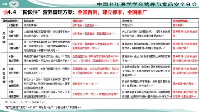 中國老年醫(yī)學(xué)學(xué)會副會長/營養(yǎng)與食品安全分會會長胡雯教授對共識內(nèi)容進(jìn)行了全面詳細(xì)的解讀。該共識明確了多學(xué)科團(tuán)隊的管理模式、營養(yǎng)干預(yù)流程,基于吞咽障礙分級來制定家庭營養(yǎng)管理方案?!锻陶瞎沧R》發(fā)布了C-DHI量表,提供了吞障老人的篩查/隨訪監(jiān)測表格、分級食物推薦等,將管理流程中的每一步落到實(shí)處,旨在可以讓基層醫(yī)療工作者和養(yǎng)老機(jī)構(gòu)、家庭照護(hù)者直接運(yùn)用,真正做到了專業(yè)性和可操作性。