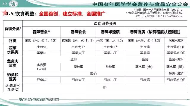 老齡化是目前中國社會面臨的嚴(yán)峻挑戰(zhàn)。我國擁有全球最多和增速最快的老年人群。吞咽障礙廣泛存在于老年人中但容易被其忽視(全球發(fā)生率為35%~60%),影響老人功能、健康、營養(yǎng)狀況,增加死亡率和降低生活質(zhì)量?,F(xiàn)美、英、日、澳等國均已制訂吞咽障礙患者膳食指南,我國現(xiàn)有康復(fù)醫(yī)學(xué)界發(fā)布了《卒中患者吞咽障礙和營養(yǎng)管理的中國專家共識(2013年版)》、《中國吞咽障礙評估與治療專家共識(2017年版)》、《中國卒中吞咽障礙與營養(yǎng)管理手冊(2017年版)》,其中指出營養(yǎng)管理對卒中后吞咽障礙十分重要,但尚無具體的營養(yǎng)管理體系,也無與吞咽功能分級對應(yīng)的營養(yǎng)管理方法,一定程度影響了吞咽障礙多學(xué)科合作中的實(shí)踐應(yīng)用。這也是本次共識意在解決的問題之一。