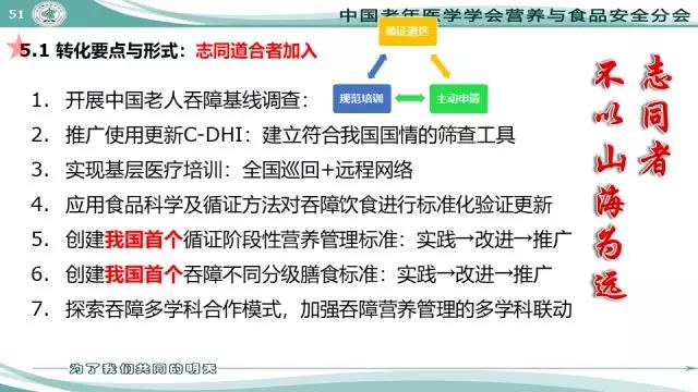 相信經(jīng)過我們的不懈努力,通過培訓(xùn)和壯大吞咽障礙的營養(yǎng)管理專業(yè)隊伍,一定會讓我國的吞咽障礙患者得到更好的營養(yǎng)管理,擁有更高的生活質(zhì)量。讓我們攜手共進(jìn),為中國老年營養(yǎng)事業(yè),為了我們共同的明天繼續(xù)努力奮斗!