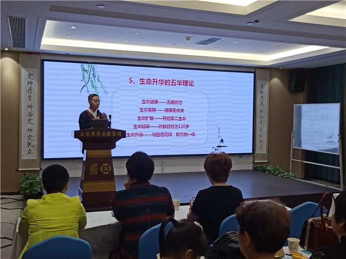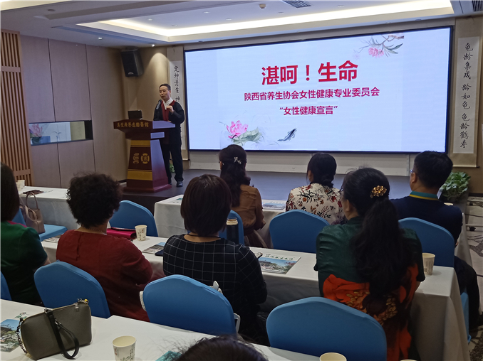 陜西省養(yǎng)生協(xié)會專家顧問、陜西省養(yǎng)生協(xié)會女性健康專業(yè)委員會主任王中鷗作“湛呵!生命”的女性健康專題講座。