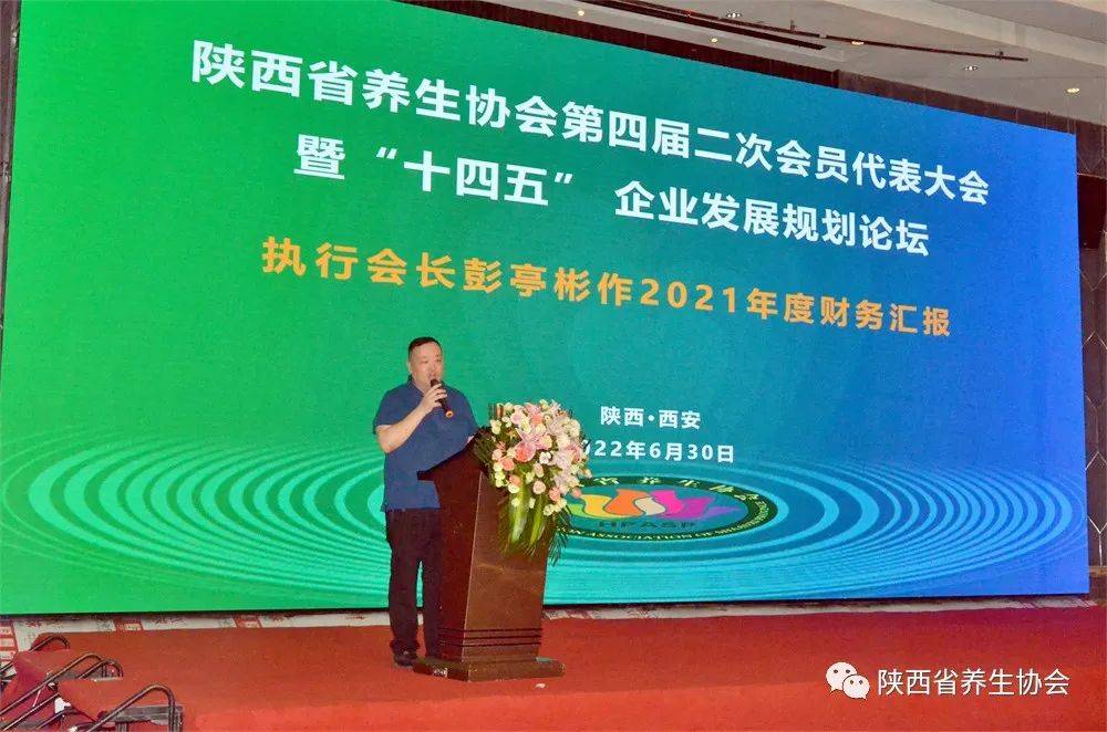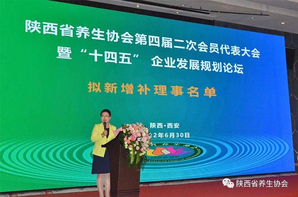 2022年6月30日,陜西省養(yǎng)生協(xié)會(huì)第四屆二次會(huì)員代表大會(huì)暨“十四五”企業(yè)發(fā)展規(guī)劃論壇在西安賽瑞喜來(lái)登大酒店成功召開。本次大會(huì)應(yīng)到會(huì)員代表216人,實(shí)到會(huì)員代表207人,超過(guò)全體會(huì)員代表的三分之二以上,符合有關(guān)規(guī)定。出席本次大會(huì)的嘉賓有陜西省養(yǎng)生協(xié)會(huì)名譽(yù)會(huì)長(zhǎng)、陜西省老齡事業(yè)發(fā)展基金會(huì)理事長(zhǎng)艾向東,西京中醫(yī)藥研究院院長(zhǎng)、享受國(guó)務(wù)院政府特殊津貼專家蘇禮,西安市蓮湖區(qū)人民法院原黨組書記、院長(zhǎng)閔合平,教授、醫(yī)學(xué)博士、中國(guó)民族醫(yī)藥學(xué)會(huì)科普分會(huì)副會(huì)長(zhǎng)張明科,西安市首屆名中醫(yī)主任醫(yī)師楊志春,副主任醫(yī)師、原西京醫(yī)院實(shí)驗(yàn)外科主任、西安工人療養(yǎng)院原院長(zhǎng)王連剛,陜西省老齡事業(yè)發(fā)展基金會(huì)秘書長(zhǎng)鄧學(xué)藝,漢中市養(yǎng)生協(xié)會(huì)會(huì)長(zhǎng)、洋縣新健康醫(yī)院院長(zhǎng)柳偉民,銅川市文化旅游投資控股有限公司副總經(jīng)理?xiàng)罾^濤,銅川市耀州區(qū)孫思邈研究會(huì)會(huì)長(zhǎng)雷華建, 藍(lán)田縣養(yǎng)生協(xié)會(huì)常務(wù)副會(huì)長(zhǎng)藺玉昌,武盾實(shí)業(yè)集團(tuán)董事長(zhǎng)彭亭彬,陜西烹飪大師、陜西飯店協(xié)會(huì)副會(huì)長(zhǎng)王彬恩,府谷保健研究協(xié)會(huì)會(huì)長(zhǎng)劉五兒,陜西華佑醫(yī)療投資集團(tuán)董事長(zhǎng)張琳,終南醫(yī)養(yǎng)院董事長(zhǎng)劉齊鋒,陜西柏源實(shí)業(yè)集團(tuán)董事長(zhǎng)侯西彬,陜西健馳生物藥業(yè)董事長(zhǎng)王其兵,陜西省養(yǎng)生協(xié)會(huì)監(jiān)事長(zhǎng)劉凱軍等。